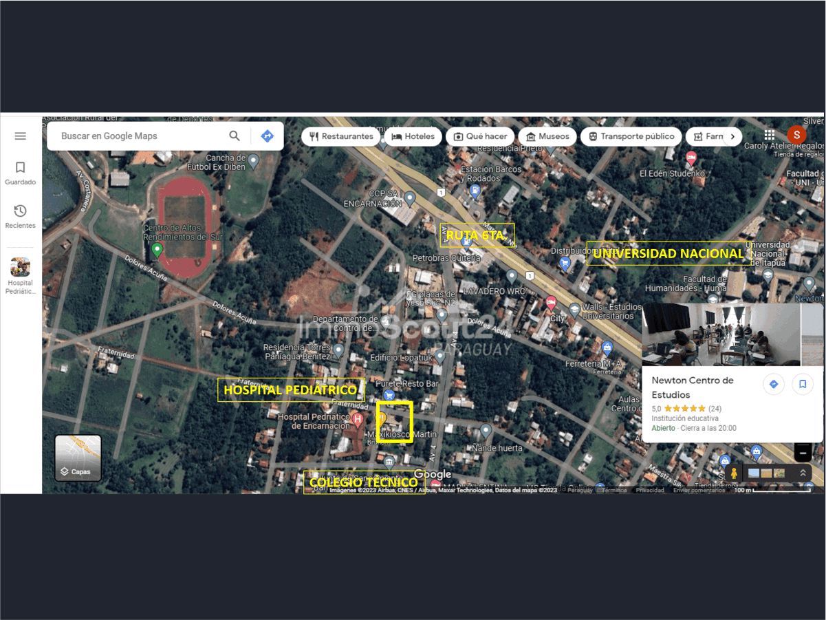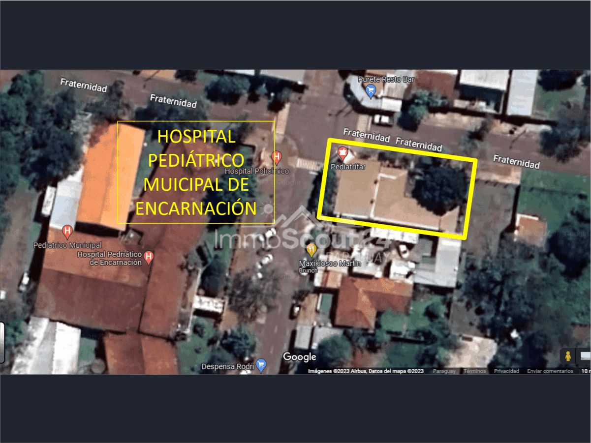 Wohnhaus + Gewerbeeinheiten in Encarnación zu verkaufen: Grundstücksgröße: 14 m x 30 m (420 m²), strategisch gute Lage, direkt gegenüber dem Städtischen Kinderkrankenhaus von Encarnación, 300 m von der Route PY01 (Asunción-Encarnación), 300 m von der Technischen Hochschule, 1000 m von der Nationalen Universität Itapúa (UNI) und 8 Minuten (4,4 km) vom Stadtzentrum von Encarnación entfernt. Wohnhaus: 3 Schlafzimmer, 2 Badezimmer, große Wohnküche, Grillplatz, überdachte Terrasse, Abstellplatz für 2 Fahrzeuge. Gewerbeeinheiten, derzeit als Apotheke genutzt + zwei Studio-Apartments. Preis: 150.000 USD